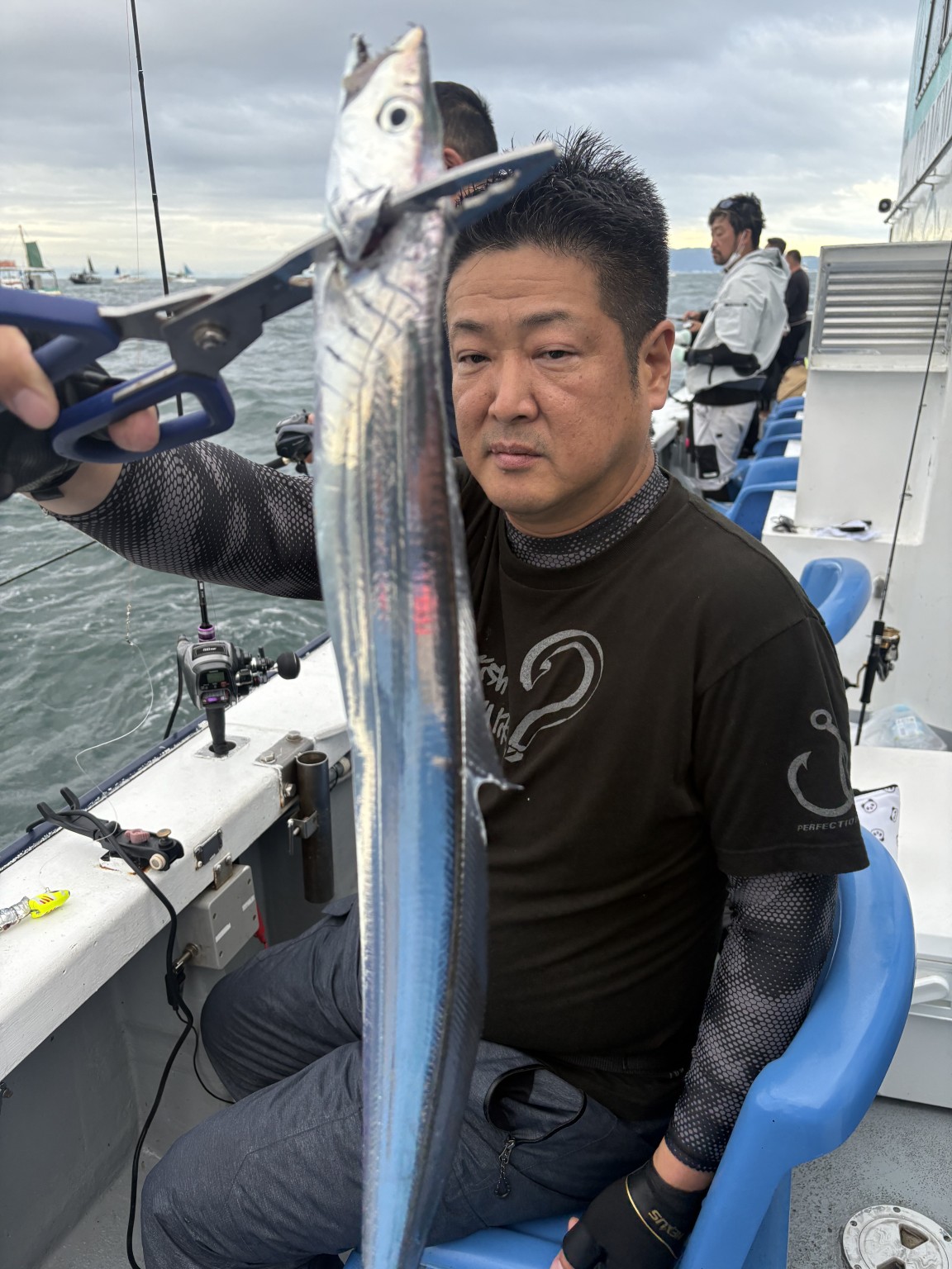 終盤はタチウオの活性も更に上がり船中で一気に釣れ出す状況も増えましたが雨が降ってきたりと天気もタチウオも落ち着かない日でした。